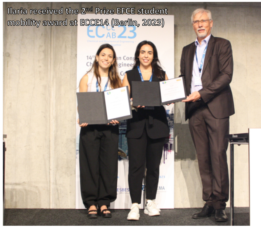 Ilaria received the 2nd Prize EFCE Student Mobility Award at 14th European Congress of Chemical Engineering & 7th European Congress of Applied Biotechnology – ECCE14 & ECAB7 (Berlín, 2023).